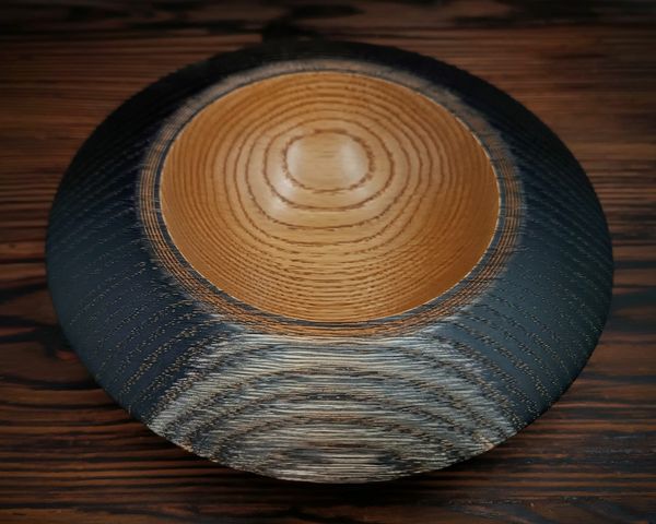 Dubová miska neobvyklých tvarů a barev 🙂 Vnější strana je ebonizována a okraj texturován.